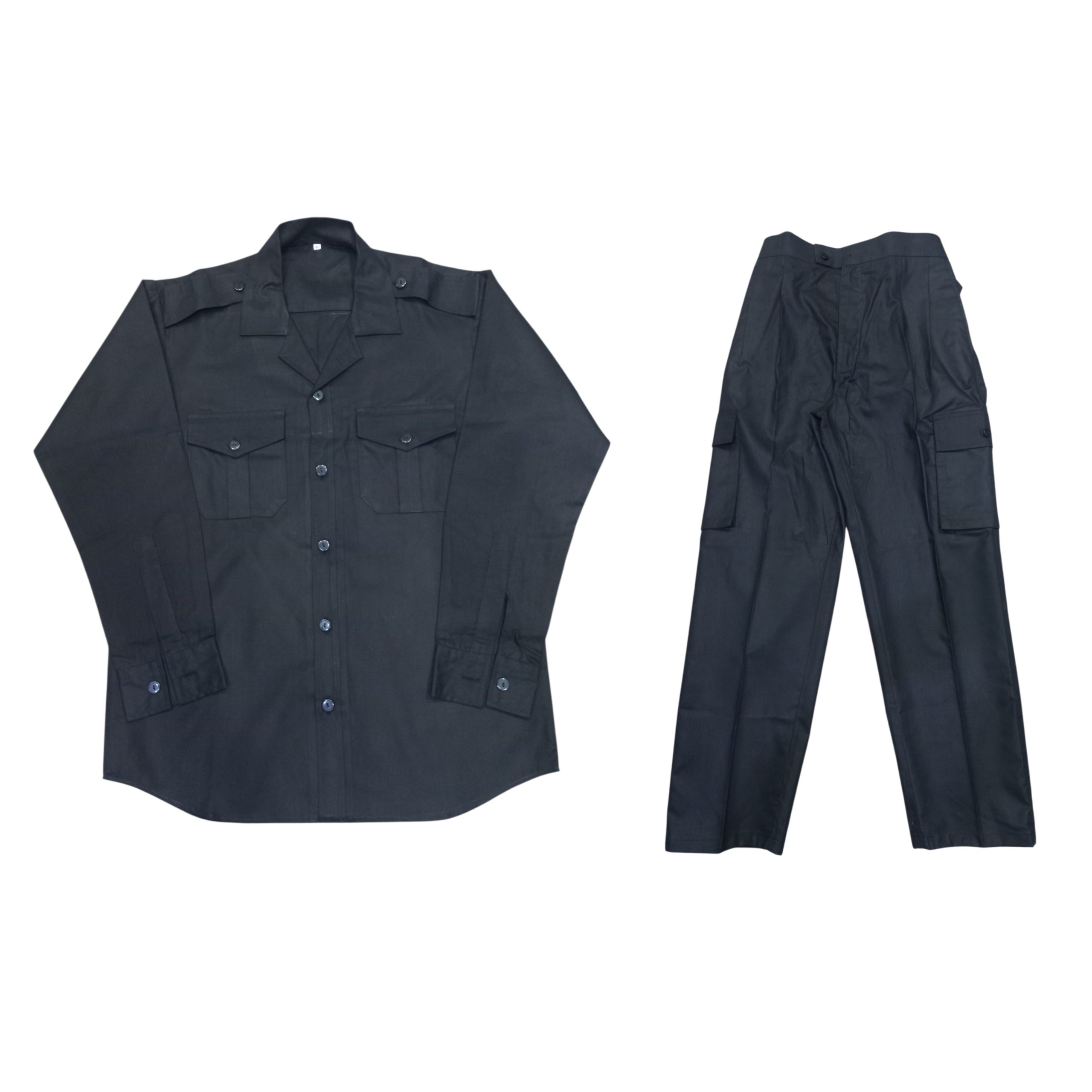 Security Uniform Black Shirt paired with black pant available at DS Collection outlet. Shirt have two front chest pocket with flap, shoulder paired with back elastic belt pant with cargo pockets. DS Collection is the leading uniform manufacturer and supplier in Pakistan.